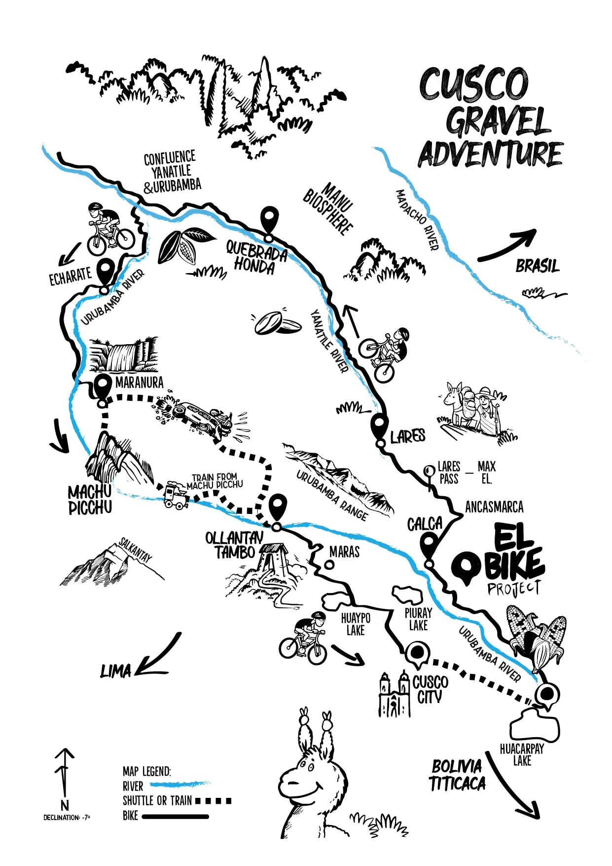 Embarcarte en una emocionante aventura de 10 días recorriendo en gravel los hermosos paisajes de Cusco. Este recorrido te llevará por rutas poco exploradas, combinando diversión, vivencias culturales y paisajes de ensueño. Cada día ofrece nuevas vistas y terrenos, resaltando la rica cultura y biodiversidad de Cusco. Por las noches, te alojarás en pintorescos pueblos, donde podrás probar la deliciosa comida local y compartir momentos con otros ciclistas. Ya seas un ciclista experimentado en gravel o nuevo en esta modalidad, este viaje te brinda una experiencia única, mezclando aventura, descubrimiento y relajación.